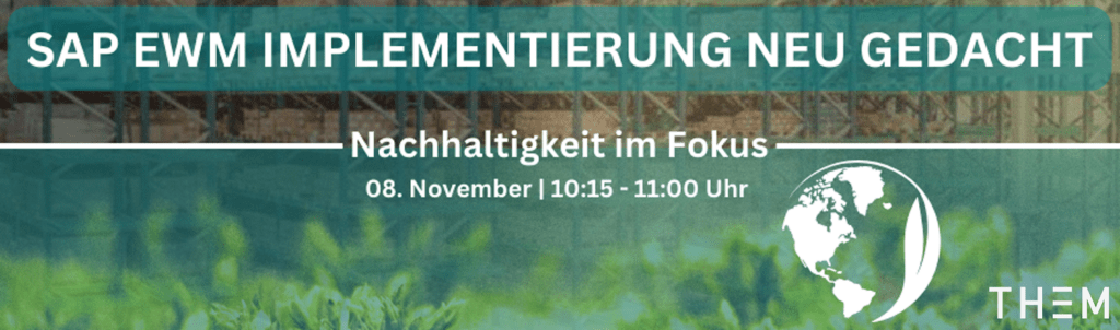 Wir laden dich ganz herzlich ein, mit uns SAP EWM Projekte neu zu denken, um Nachhaltigkeit im Lager in den Fokus zu rücken.